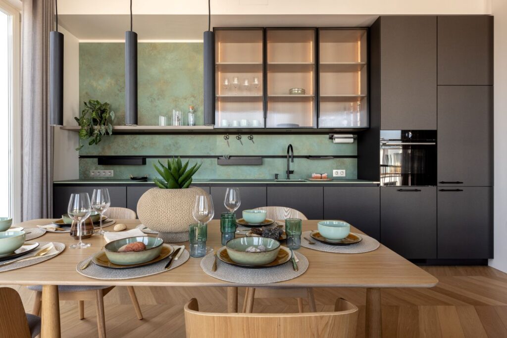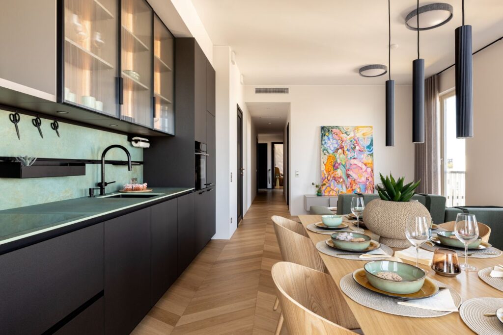 Näidiskorteri siselahenduse autor on sisearhitekt Loereida Hein, kelle loodud ruumikujunduses on kasutatud lisaks eelmainitud toodetele ka Hansgrohe köögisegistit.