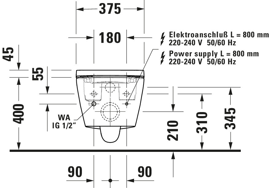 Duravit D-NEO SensoWash Compact seinapealne pesuga WC-pott