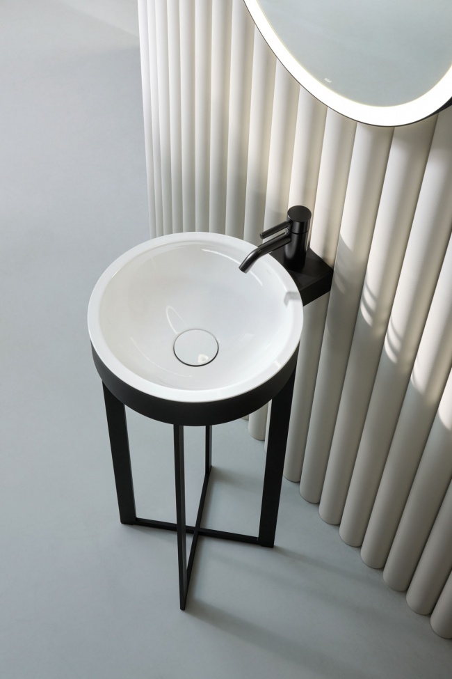XCROSS valamu on minimalistliku, kuid tugeva visuaalse kontseptsiooniga: matist mustast terasest raam loob jõulise ristmotiivi, millele toetub valamu. Selge kontrast loob klassikalise kahetoonilise efekti ja tõstab ruumi visuaalset kvaliteeti. Disain ühendab selguse, elegantsi ja tehnilise meisterlikkuse – iga detail on täpselt viimistletud ning liited on peaaegu märkamatud. Valamu on valmistatud innovaatilisest Vitreon Steel materjalist, mis võimaldab õhukesi servi, täpseid jooni ning samal ajal tagab suure vastupidavuse ja lihtsa hoolduse.